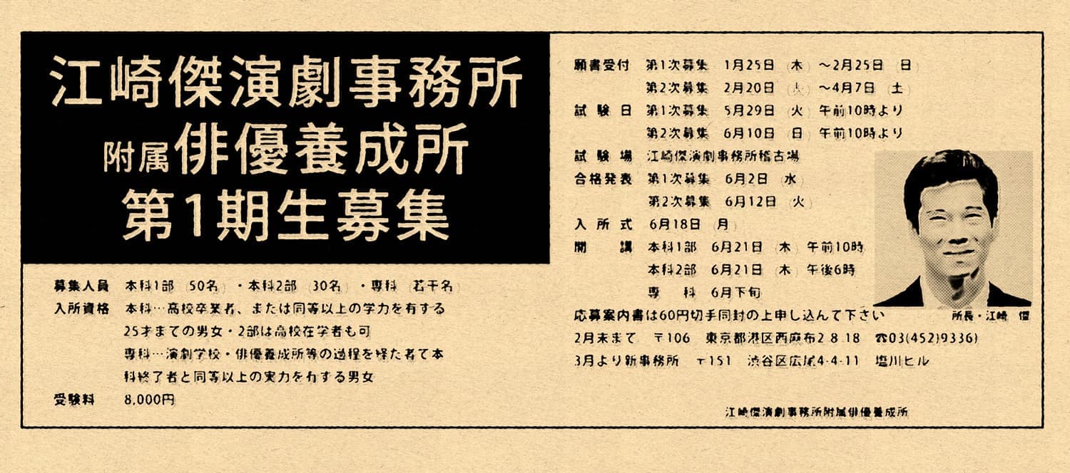 「あれ見たら、ほかの俳優の養成所なんか、通いたいと思わないね。江崎さんに付いていきたいと思う。凄すぎて」